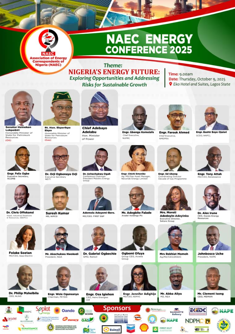 2025 N.A.E.C Energy Conference Registration Conference Registration NAEC Energy Conference 2025 - Nigeria's Energy Future Thursday, October 9, 2025 | Eko Hotel and Suites, Lagos State 2025 NAEC Energy Conference Registration Newsletter Pass Categories Select one pass category that suits your needs All Access Delegate Pass (Access to Conference Open Networking Events + VIP Sessions) Delegate Pass (Access to + Open Networking Events) Visitor Pass (Hall Only + No Breakfast/Lunch) Speaker Pass (Complimentary, invitation only) Media/Press Pass (Complimentary, subject to accreditation) Sponsor/Partner Pass (Included in Sponsorship Package)Personal Information Please provide your details for registration Title- Select -Mr.Mrs.Ms.MissDr.Prof.First NameSurnameCompany/OrganizationJob Title/PositionEmailMobile NumberCountrySelect your countryAfghanistanAland IslandsAlbaniaAlgeriaAmerican SamoaAndorraAngolaAnguillaAntarcticaAntigua and BarbudaArgentinaArmeniaArubaAustraliaAustriaAzerbaijanBahamasBahrainBangladeshBarbadosBelarusBelauBelgiumBelizeBeninBermudaBhutanBoliviaBonaire, Saint Eustatius and SabaBosnia and HerzegovinaBotswanaBouvet IslandBrazilBritish Indian Ocean TerritoryBritish Virgin IslandsBruneiBulgariaBurkina FasoBurundiCambodiaCameroonCanadaCape VerdeCayman IslandsCentral African RepublicChadChileChinaChristmas IslandCocos (Keeling) IslandsColombiaComorosCook IslandsCosta RicaCroatiaCubaCuraçaoCyprusCzech RepublicDemocratic Republic of the Congo (Kinshasa)DenmarkDjiboutiDominicaDominican RepublicEcuadorEgyptEl SalvadorEquatorial GuineaEritreaEstoniaEthiopiaFalkland IslandsFaroe IslandsFijiFinlandFranceFrench GuianaFrench PolynesiaFrench Southern TerritoriesGabonGambiaGeorgiaGermanyGhanaGibraltarGreeceGreenlandGrenadaGuadeloupeGuamGuatemalaGuernseyGuineaGuinea-BissauGuyanaHaitiHeard Island and McDonald IslandsHondurasHong KongHungaryIcelandIndiaIndonesiaIranIraqIrelandIsle of ManIsraelItalyIvory CoastJamaicaJapanJerseyJordanKazakhstanKenyaKiribatiKosovoKuwaitKyrgyzstanLaosLatviaLebanonLesothoLiberiaLibyaLiechtensteinLithuaniaLuxembourgMacao S.A.R., ChinaMacedoniaMadagascarMalawiMalaysiaMaldivesMaliMaltaMarshall IslandsMartiniqueMauritaniaMauritiusMayotteMexicoMicronesiaMoldovaMonacoMongoliaMontenegroMontserratMoroccoMozambiqueMyanmarNamibiaNauruNepalNetherlandsNew CaledoniaNew ZealandNicaraguaNigerNigeriaNiueNorfolk IslandNorth KoreaNorthern Mariana IslandsNorwayOmanPakistanPalestinian TerritoryPanamaPapua New GuineaParaguayPeruPhilippinesPitcairnPolandPortugalPuerto RicoQatarRepublic of the Congo (Brazzaville)ReunionRomaniaRussiaRwandaSaint BarthélemySaint HelenaSaint Kitts and NevisSaint LuciaSaint Martin (Dutch part)Saint Martin (French part)Saint Pierre and MiquelonSaint Vincent and the GrenadinesSamoaSan MarinoSao Tome and PrincipeSaudi ArabiaSenegalSerbiaSeychellesSierra LeoneSingaporeSlovakiaSloveniaSolomon IslandsSomaliaSouth AfricaSouth Georgia/Sandwich IslandsSouth KoreaSouth SudanSpainSri LankaSudanSurinameSvalbard and Jan MayenSwazilandSwedenSwitzerlandSyriaTaiwanTajikistanTanzaniaThailandTimor-LesteTogoTokelauTongaTrinidad and TobagoTunisiaTurkmenistanTurks and Caicos IslandsTuvaluTürkiyeUgandaUkraineUnited Arab EmiratesUnited Kingdom (UK)United States (US)United States (US) Minor Outlying IslandsUnited States (US) Virgin IslandsUruguayUzbekistanVanuatuVaticanVenezuelaVietnamWallis and FutunaWestern SaharaYemenZambiaZimbabweAgreements/Consent Please review and check the boxes below I agree to the Terms and Conditions I agree to the Privacy Policy I consent to receive event information, updates, and marketing communication from the NAEC Conference Organisers.Data Protection and PrivacyBy registering, you consent to the collection, processing, and storage of your personal data for event administration purposes. Your information may be shared with partners, sponsors, and exhibitors strictly for event-related communications, in compliance with the Privacy Policy. You may opt out of marketing communications at any time.Complete Registration